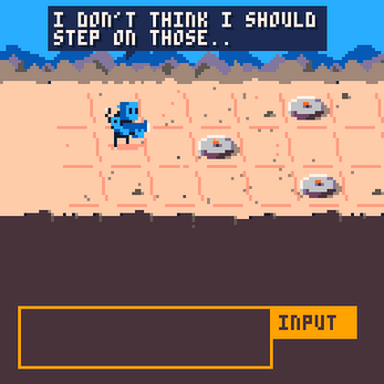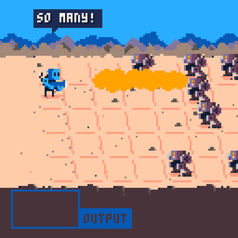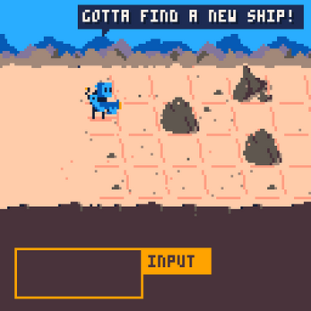 After a rough landing , Blastingbot is trapped on a hostile mech-filled planet and needs to find a new ship to escape. In the "landing" his antenna was damaged and he can now only receive commands in long groups. No worries though! He's still got his blaster to help him out!
